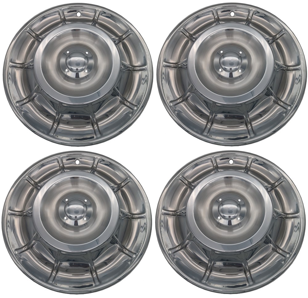 Set of 4 new reproduction Hubcaps/Wheel Covers for 1956, 1957, & 1958 Corvettes. Set does not include the spinners. These hubcaps have the bright ice blue finish that the judges look for. Why search and pay a ridiculous price for used parts with dings or dents? These are brand new and sure to compliment your Corvette!