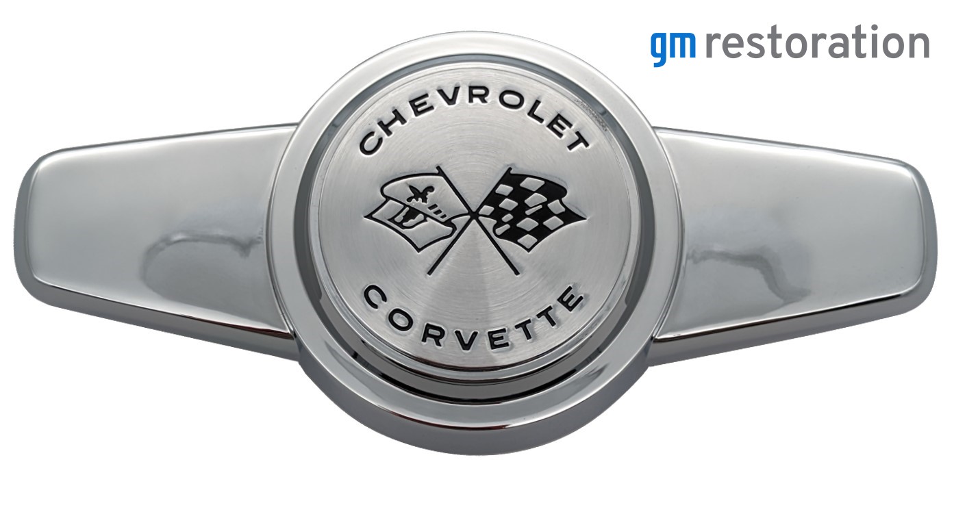 Set of 4 new reproduction Hubcap/Wheel Cover Spinners with Hardware for 1956, 1957, 1958, 1959, 1960, 1961, & 1962 Corvettes. The set includes 4 Spinners, 4 stainless retaining rings and 16 screws for mounting the spinners to the hubcaps/wheel covers. Our spinners carry the GM Restoration Parts logo. If you look closely, the raised edge is visible in the center of the “flipper” on all sides. Judges look for this feature. Get all of your points! Original GM part# 3725239.
