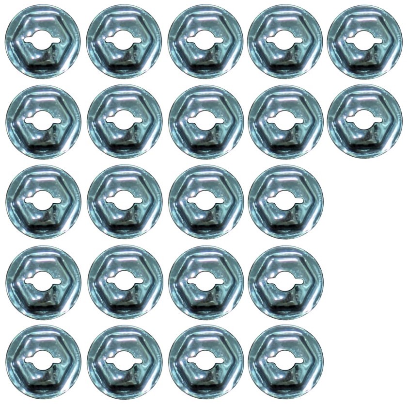 New reproduction 22-piece set of Top Fender Moulding Speed Nuts for 1958, 1959, 1960, 1961, & 1962 Corvettes. Proper size for installation of one pair of our Top Fender Mouldings. Also used on other trim items for your Corvette, including the side spears used on 1958-1961 models.