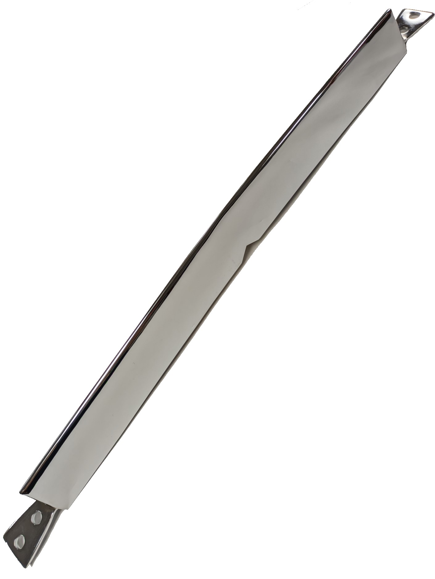 This is a new, reproduction 1961 thru 1962 Corvette Center Grille Bar. The Bar is stamped steel, chrome plated, and has the v-shaped notch in the middle, just like the originals. Original GM Part# 3779661.