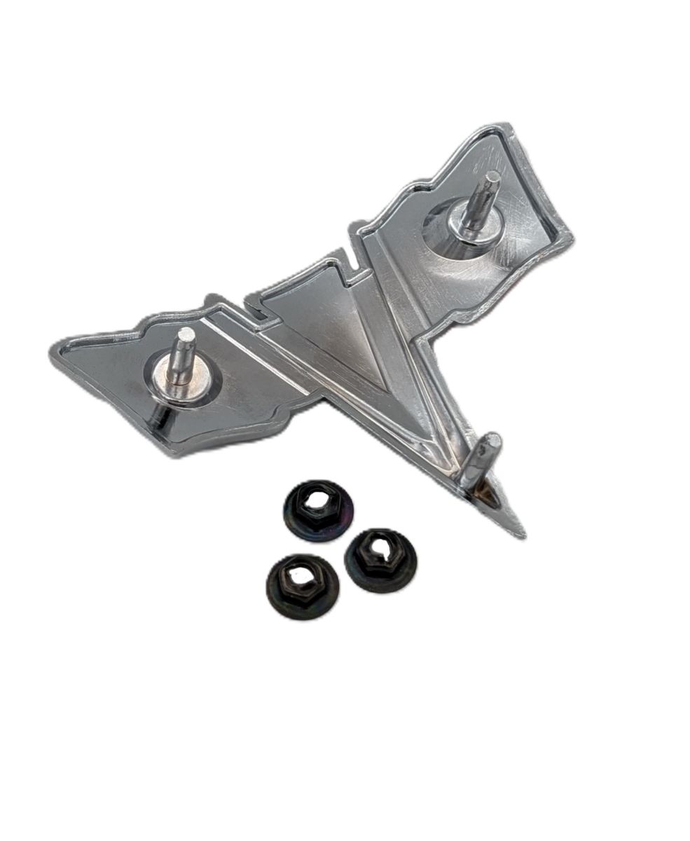 New, reproduction Front Panel / Nose Emblem for 1963 and 1964 Corvettes. This emblem is a Licensed GM Restoration Part. Comes with 3 speed nuts for easy mounting. Original GM part number 3797400 (included for reference only).