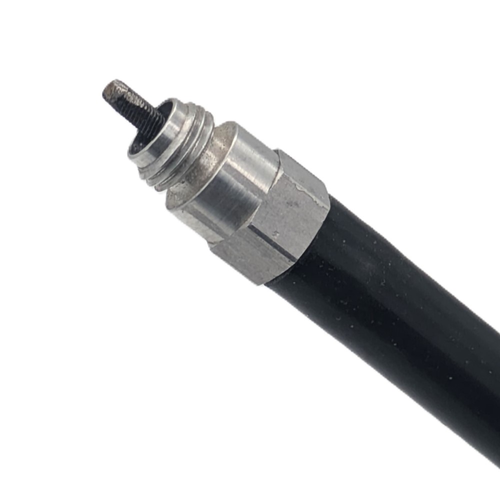 New reproduction Trip Odometer Reset Cable for 1963 and 1964 Corvettes. The cable measures 15.5 inches long. This reset cable is made of an aluminum body with a black rubber casing and comes with the nut and the reset knob. Complete and ready for installation.
