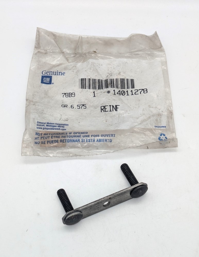 This is a NOS Power Steering Cylinder Bracket/Reinforcement for 1963 through 1982 Corvettes. The bracket is a Genuine GM new old stock part still in the original GM packaging. Please note, price is for one part, there are two required per car. Never installed and in excellent condition. Original GM part number 14011278.