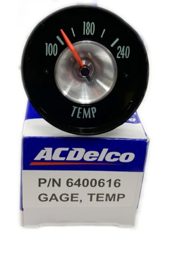 New reproduction 1963 temperature gauge is a direct replacement part manufactured under license by a major AC Delco supplier. Gauge reads 100-240. Font and coloring is just like the originals. Part# 6400616