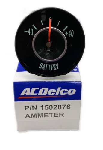 New reproduction 1964 battery or amp gauge. Direct replacement part manufactured under license by a major AC Delco supplier. Font and coloring is just like the originals. Part# 1502876.