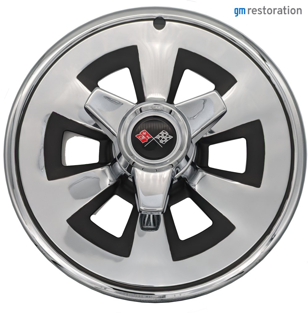 In 1965 Corvettes came standard with these great looking hubcaps with the cool plastic crossed-flag emblem in the middle. The only problem was how difficult they were to mount on the rim without leaving small dents. Unlike most wheel covers, the designers did not incorporate a rib or stronger rolled area on the outer most part of the wheel cover. Decades later, it is very rare to find a really nice original hubcap. That is why Corvette Specialties Manufacturing invested in brand new tooling to reproduce these fine looking hubcaps to compliment your ‘65. Knock offs look good, but they are not year specific like factory hubcaps. When you see a 1965 Corvette with the correct hubcaps, you know from a distance it is, in fact, a ‘65!