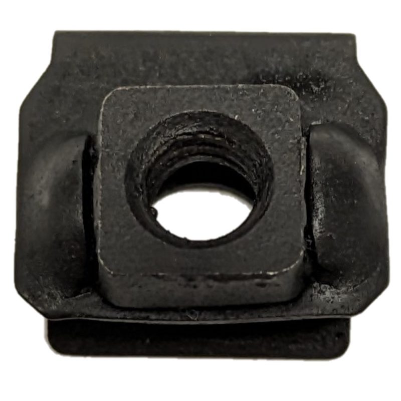 New reproduction Grille U-nut for 1966 & 1967 Corvettes. This exact reproduction U-nut is used in 1 place at the center of the grille and nothing like the original was available until now. Note the “M” logo on each nut. There has been no correct reproduction of these nuts; just a generic version that has a hex steel nut instead of the square nut like the original. Judges look for these so get those extra points! Original GM Part number 3831934.
