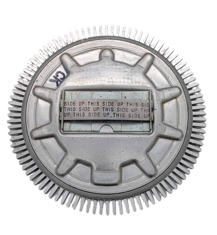 This is a new reproduction Schwitzer Style Fan Clutch for 1966-1967 427 Corvettes and 1968 427 Corvettes with AC. It is a correct reproduction made by a licensed GM supplier. The fan clutch has a flat rectangular bi-metallic thermostatic element and has the “CK” imprint. Original GM part number 3857531.