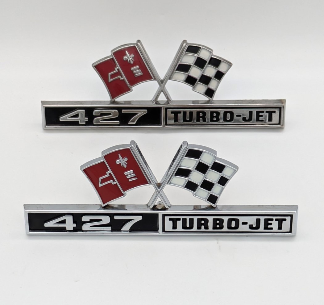1966 Corvette Front Fender 427 Turbo-Jet Emblems – NOS Pair 3876425