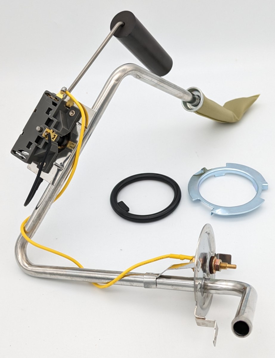 New reproduction Fuel/Gas Tank Sending Unit (sender, meter) for 1968, 1969, 1970, 1971, 1972, 1973, and 1974 Corvettes. Ethanol resistant with stainless steel construction. This sending unit mounts inside the gas tank and functions as pick-up for the fuel and meter for the fuel gauge indicator. Manufactured by a tier 1 GM supplier using the latest circuitry. These sending units ship fully assembled and include strainers in the original style, a new mounting gasket/seal, and accurate floats that provide proper gauge readings. Original GM Part# 6428164.