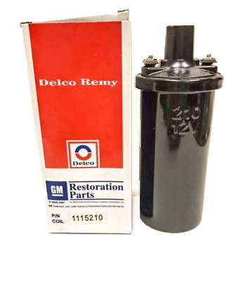 New reproduction Delco Ignition Coil for for use in 1965 Corvettes with 396-425 HP engines, and 1966 Corvettes with 427-390 HP engines with manual transmission and Transistor Ignition. Licensed GM Restoration part. Coil has the raised lettering on the case & the Delco Remy logo on the top. Many other GM vehicles use this coil, too. Check your manuals! Delco Part # 1115210.