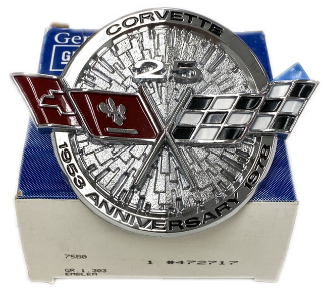 Brand new in the original box. The 78 front or nose emblem was only used for the one year. This was the 25th anniversary and all 1978 Corvettes used this emblem.